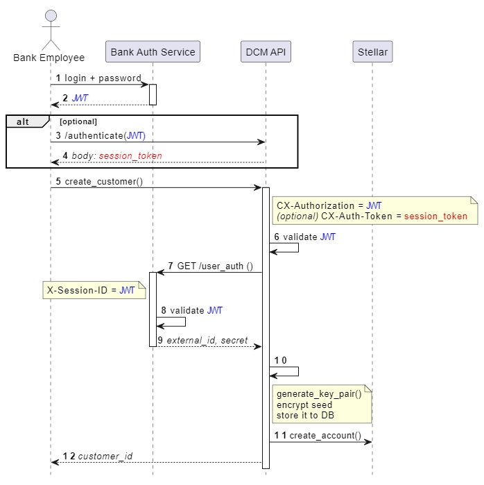 Згодом, на кроці 7 DCM формує власний JWT та надсилає його до Банку API endpoint /user_auth у заголовку
