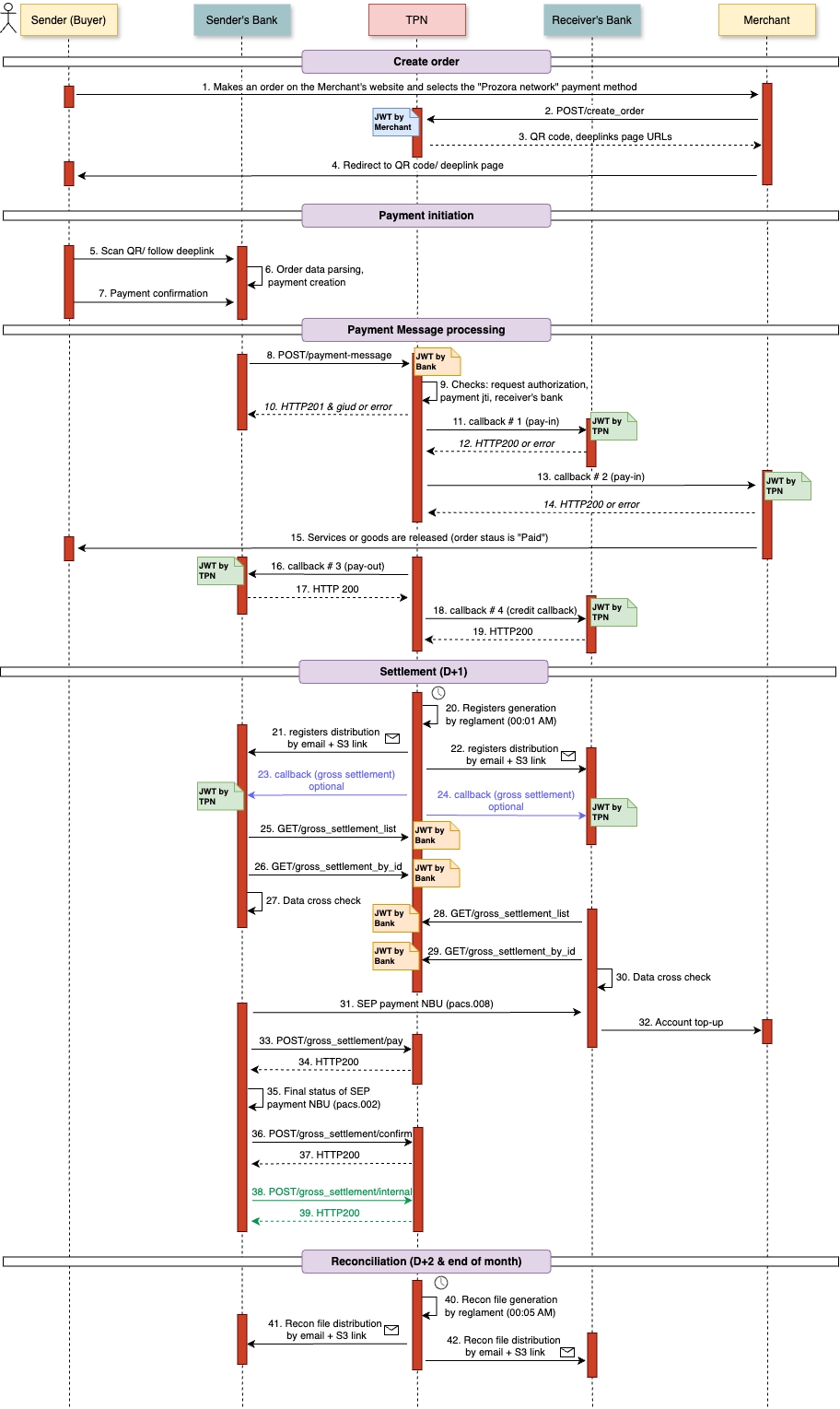 Upon receiving the payment callback, the Merchant updates the online order to the next status. Based on the credit callback, the Recipient Bank can decide whether to instantly transfer the funds to the Merchant’s account.